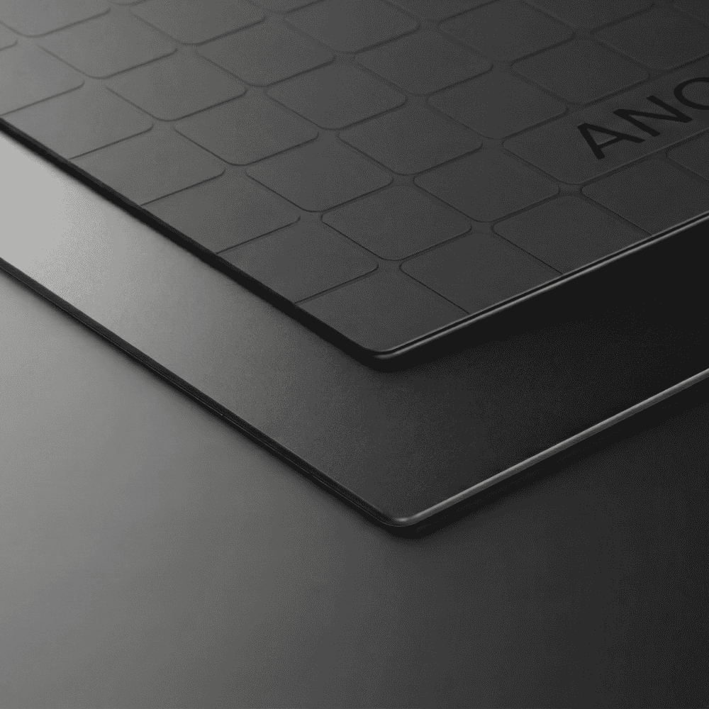 ANCHR est conçu en verre afin d’éliminer toute variation de surface. Contrairement aux tapis en tissu, le verre ne se tasse pas, ne s’use pas et ne se déforme pas avec le temps. La sensation reste identique, session après session année après année.
